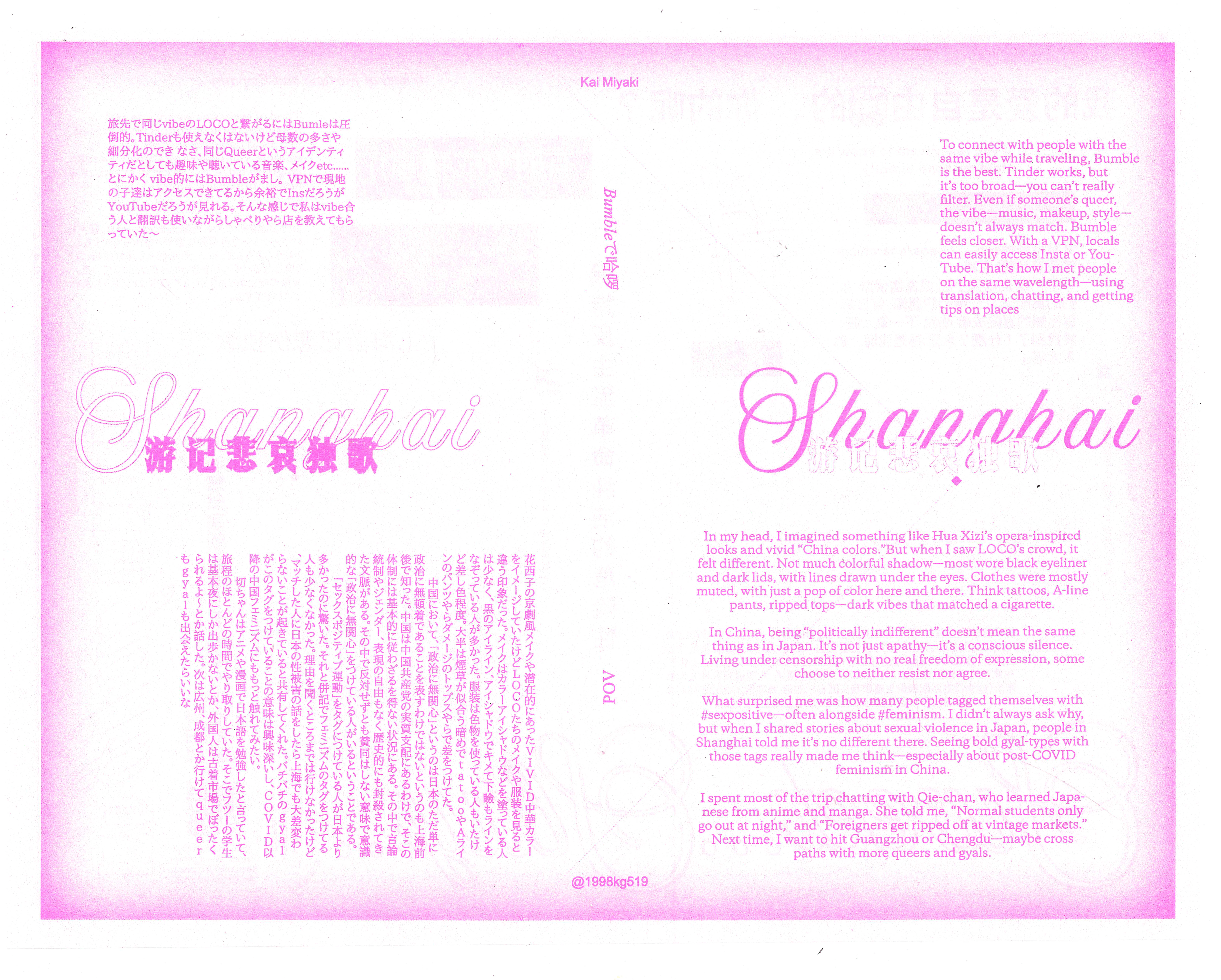 I spent most of the trip chatting with Qie-chan, who learned Japanese from anime and manga. She told me, “Normal students only go out at night,” and “Foreigners get ripped off at vintage markets.” Next time, I want to hit Guangzhou or Chengdu—maybe cross paths with more queers and gyals.